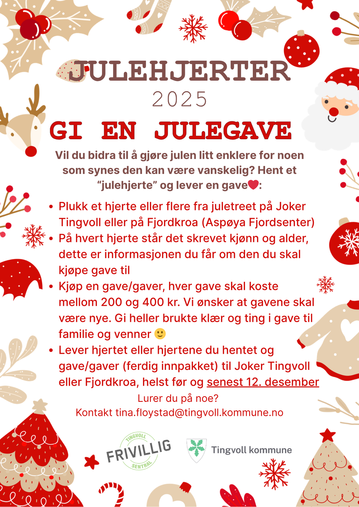 - Plukk et hjerte eller flere fra juletreet på Joker Tingvoll eller på Fjordkroa (Aspøya Fjordsenter)